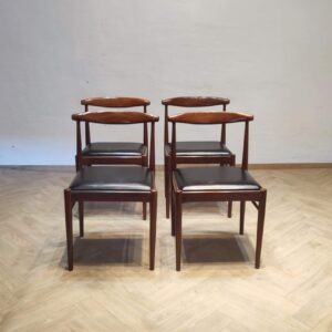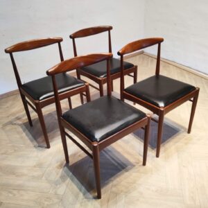 4 WOODEN LEATHER CHAIRS IN DARK WALNUT